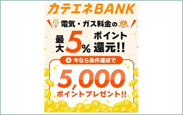 カテエネBANKが電気・ガス料金最大5%還元へ!最大5,000ポイント…