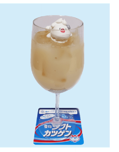 商品特長:1956年発売から愛され続ける「雪印ソフトカツゲン」に、北海道産生乳100%を使用したソフトクリームをトッピング。70周年記念オリジナルカップで提供します。テイクアウト専用、期間限定での販売。