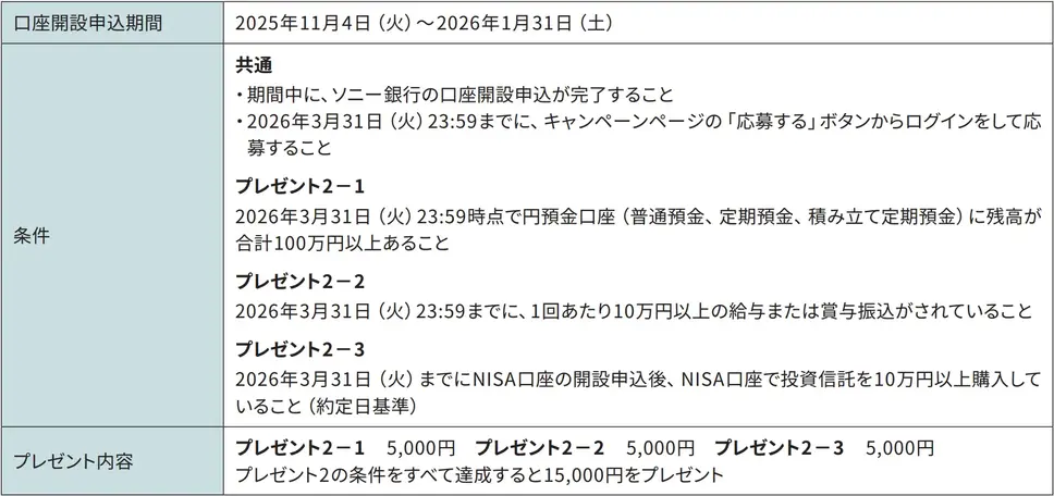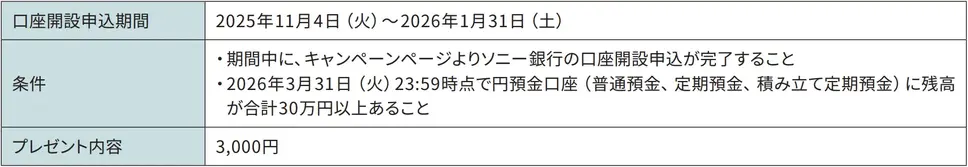 条件を達成した利用者には、2026年4月下旬を目処に、ソニー銀行の円普通預金口座へ入金されます。