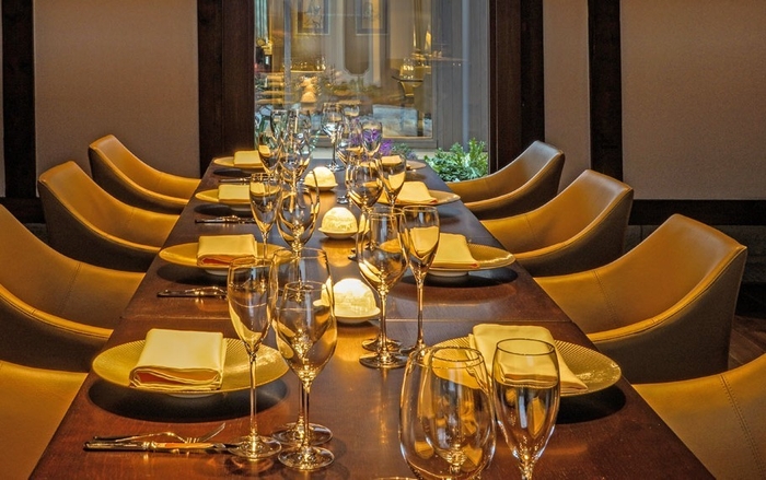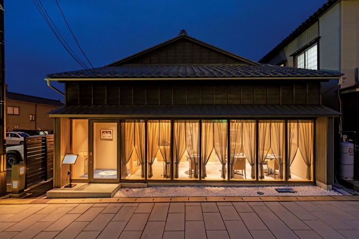 夕食会場は、歴史ある蔵を改装したレストラン「タテルヨシノ 三國湊」。ミシュランシェフ・𠮷野建(よしの たてる)氏がプロデュースするフレンチコースをお楽しみいただけます。