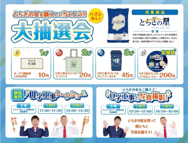 ・栃木米アンバサダー・U字工事を店舗に招聘し、トークショー・じゃんけん大会等を行います。(観覧無料)