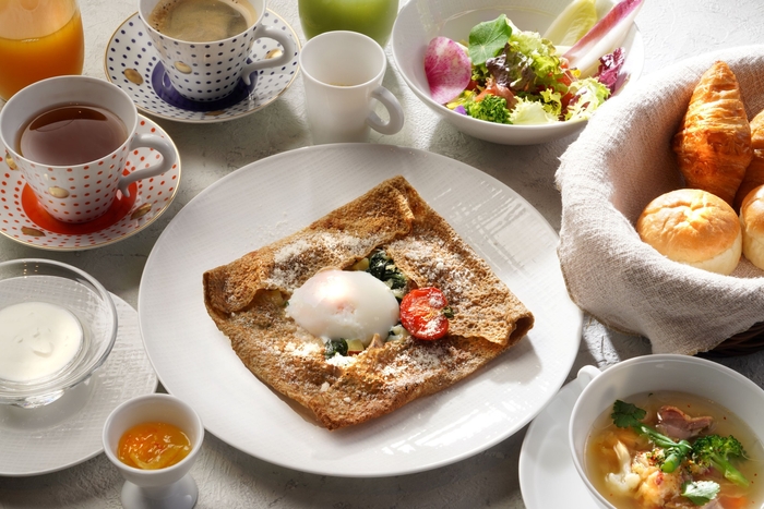 口コミでも評判の蕎麦粉のガレットをはじめ、福井の食材を生かした朝の味を楽しめます。