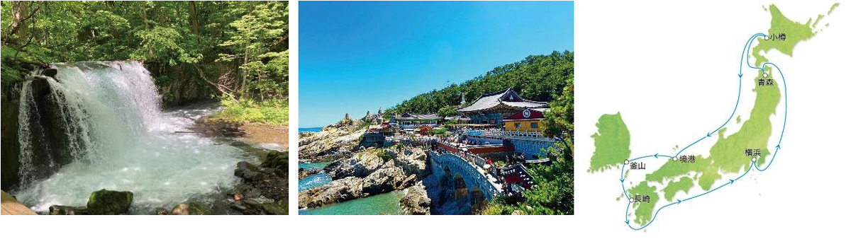初夏の爽やかな風を感じながら、下船後すぐに徒歩で散策を楽しめる港町「青森」「小樽」「長崎」に加えて、出雲大社や松江の玄関口となる「境港」、韓国最大の港町「釜山」を巡ります。3日間の終日航海日には、優雅なクルーズライフを存分にご堪能いただけます。