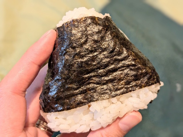 新商品の「プレミアムおにぎり 紅鮭ほぐし(柚子胡椒仕立て)」@撮影:渡邉