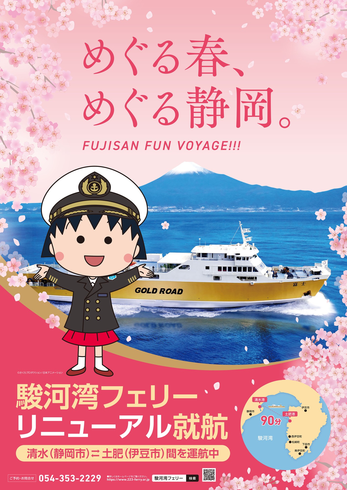 日本アニメーション株式会社(本社:東京都中央区、代表取締役社長:石川和子)がアニメーション制作・ライセンス展開を行う「ちびまる子ちゃん」の世界観を満載した、駿河湾フェリーが登場します。清水港と伊豆西海岸の土肥港を結ぶ「駿河湾フェリー」。2026年2月14日より運行開始するリニューアルをした駿河湾フェリーは、ちびまる子ちゃんの世界観で船内をラッピングし、船内アナウンスをまるちゃんの声でご案内します。ご一緒に、駿河湾の旅をまるちゃんと楽しみましょう。