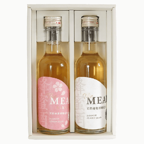 京都蜂蜜酒醸造所が国産蜂蜜で造った蜂蜜のお酒「The MEAD(250ml)」と「The MEAD さくら(250ml)」を組み合わせた紅白仕様のギフトセット。