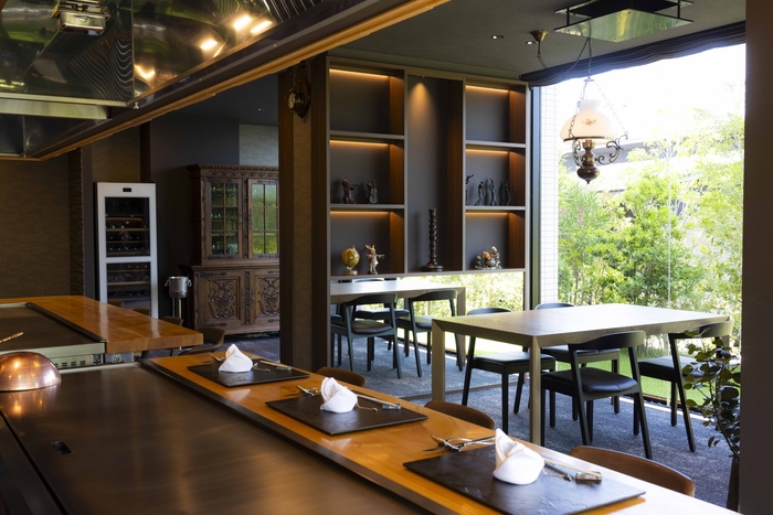 THE GOAT AWAJIのメイン・プレミアム棟1Fには、鉄板焼きレストラン「輝光(きこう)」を併設しています。国産牛や淡路島産の野菜、新鮮な魚介類を、シェフが目の前の鉄板で焼き上げる創作料理がお楽しみいただけます。(1名様11,000円〜)。