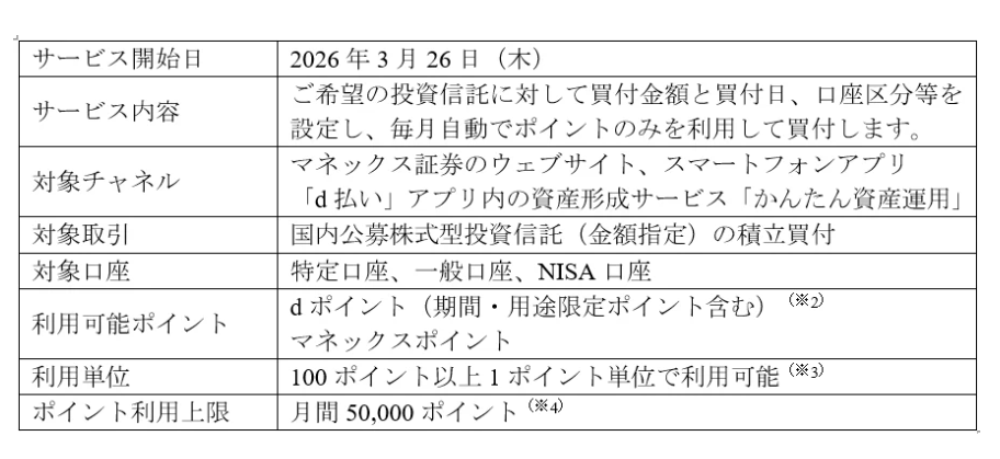 また、マネックス証券のウェブサイトやスマートフォンアプリに加え、「d払い」アプリ内の資産形成サービス「かんたん資産運用」にも対応しています。
