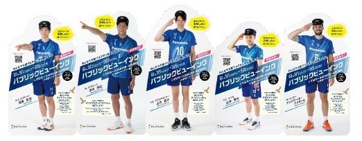 3月1日(日)~22日(日)の期間中、西田有志選手、清水邦広選手、山内晶大選手、山本智大選手、アントワーヌ・ブリザール選手の等身大パネルをくずはモール内4カ所と樟葉駅改札外の計5カ所に設置します。
